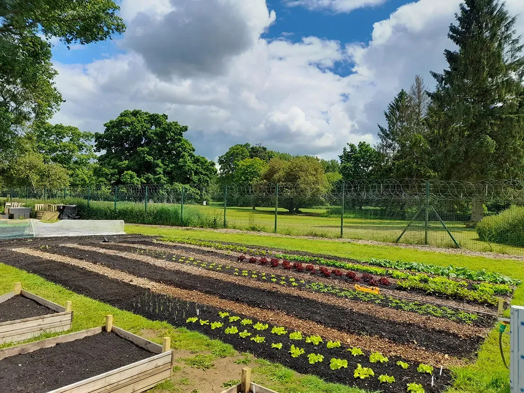 The compost produced is used on-site, supporting sustainable landscaping and a vegetable allotment for the catering facility.